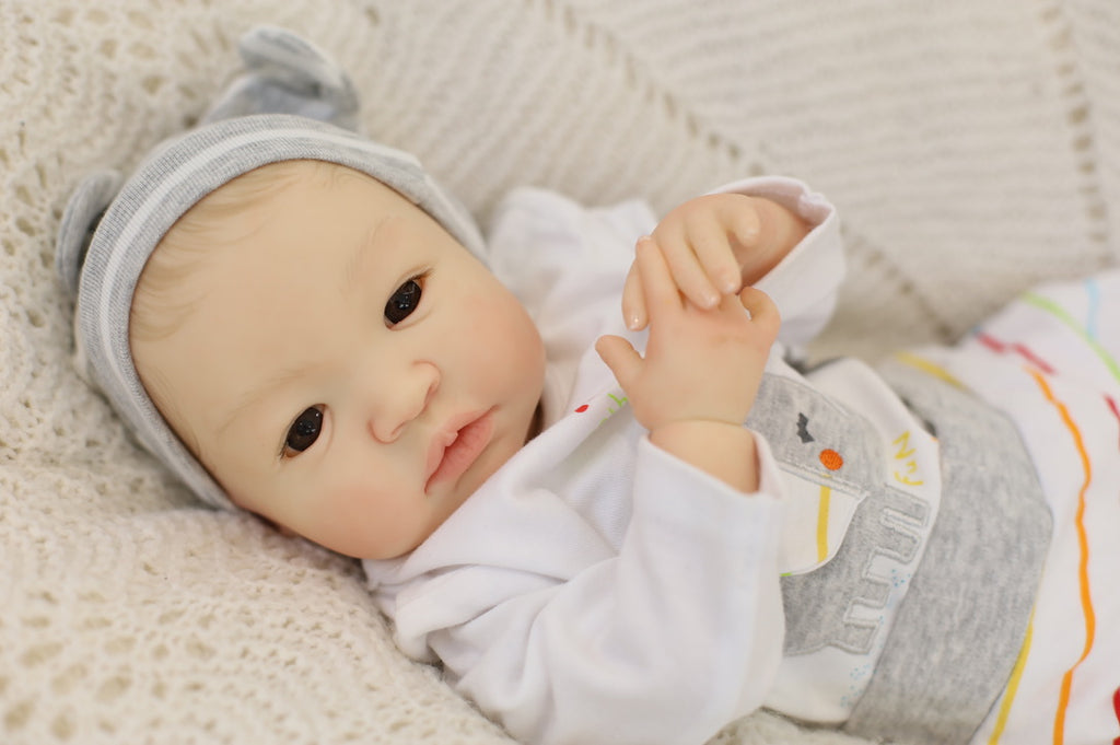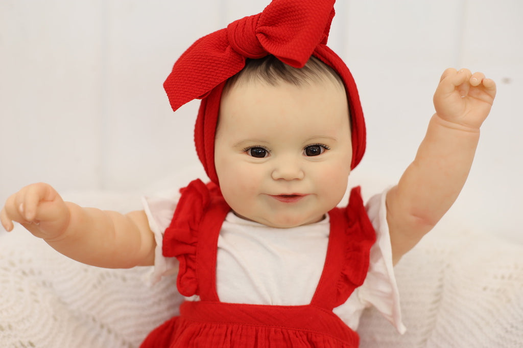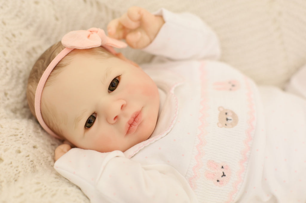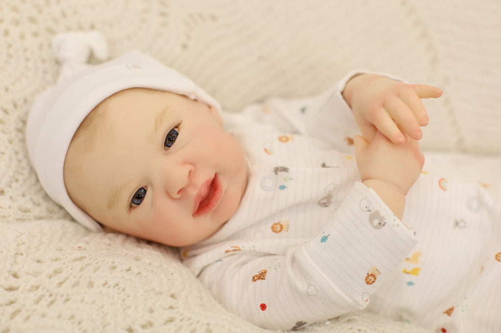 We create our Playborn dolls from genuine reborn doll kits, and paint each baby with unique care and attention. Perfect to hold and play with, playborn dolls can bring joy, comfort, and endless fun to people of all ages. Our newborn dolls are weighted with fine glass beads, while our larger toddler sized dolls are weighted with poly pellets. Included with each hand-assembled doll are a baby blanket, bottle, nappies, birth certificate, and reborn certificate of authenticity (when provided by artist).