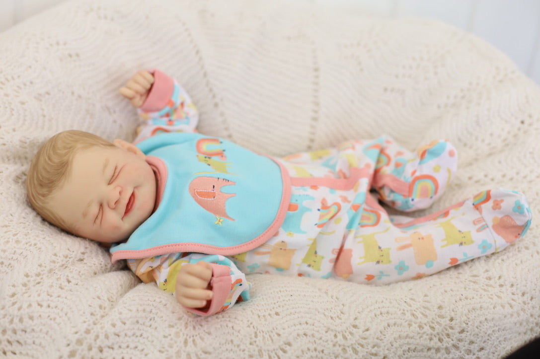 She has been hand painted at Aliyah's Playborn World by our team of talented reborn artists. Many, many layers of paint have brought this precious baby to life, making her look and feel just like a real baby.