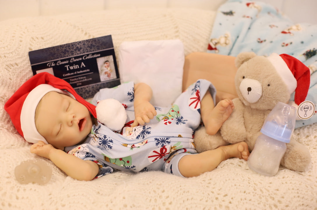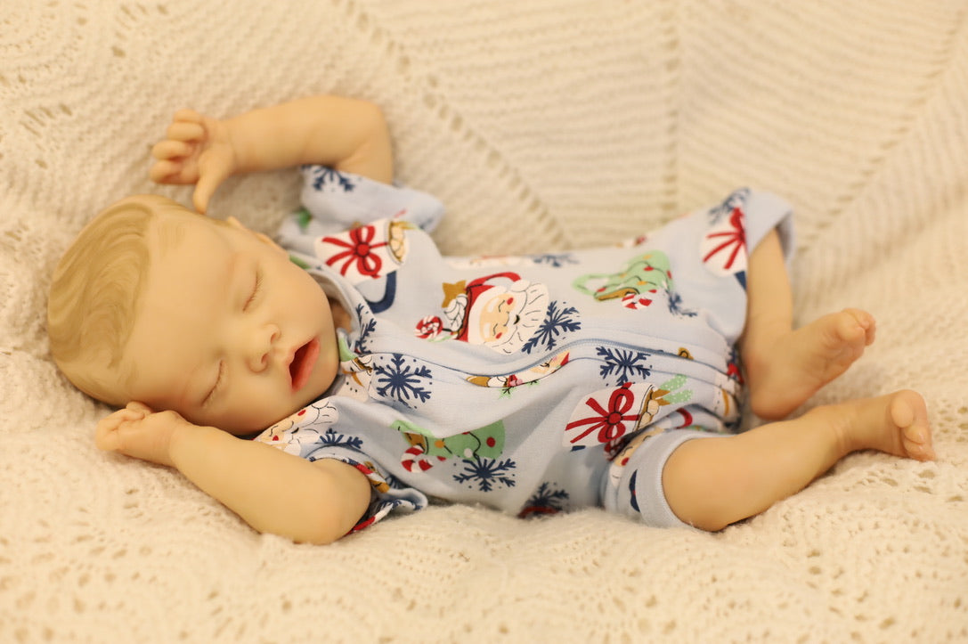 He has been hand painted at Aliyah's Playborn World by our team of talented reborn artists. Many, many layers of paint have brought this precious baby to life, making him look and feel just like a real baby.
