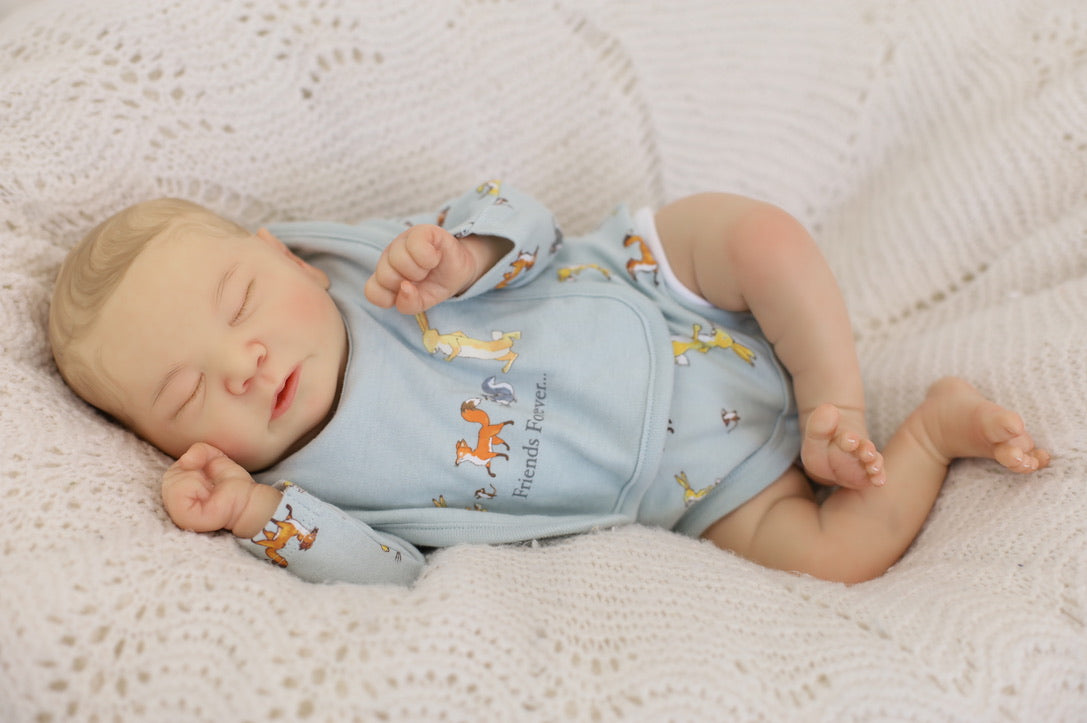 He has been hand painted at Aliyah's Playborn World by our team of talented reborn artists. Many, many layers of paint have brought this precious baby to life, making him look and feel just like a real baby.