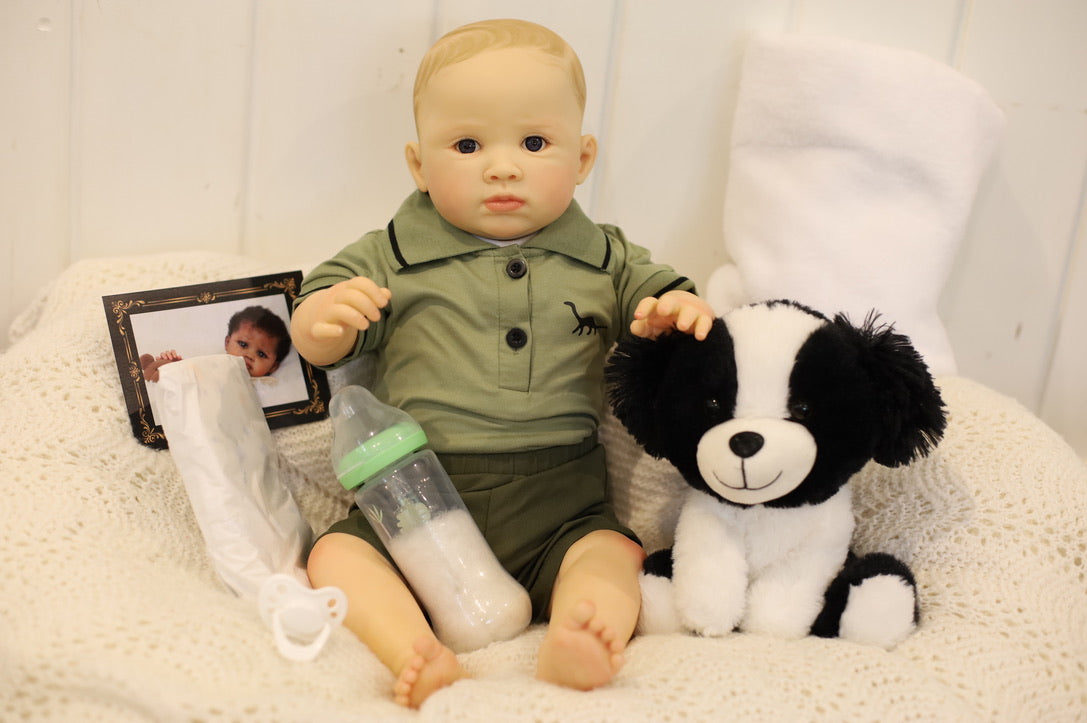 Reuben will come home with the outfit he is wearing, magnetic dummy/pacifier, two nappies/diapers, toy, bottle, blanket, Certificate of Authenticity and Birth Certificate.
