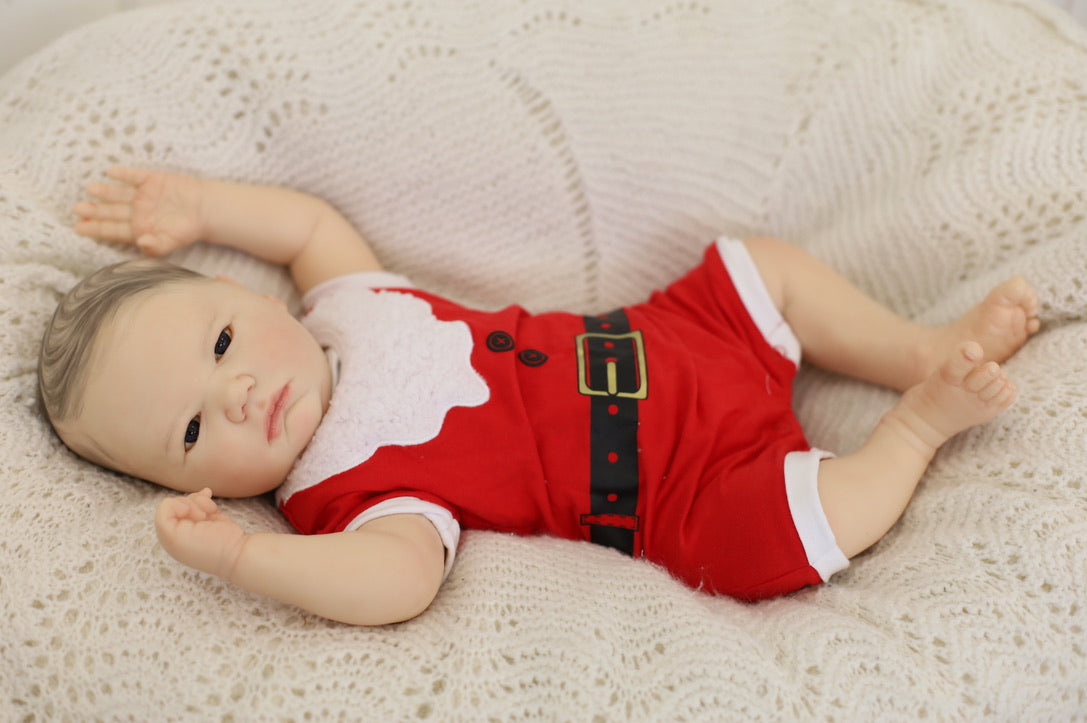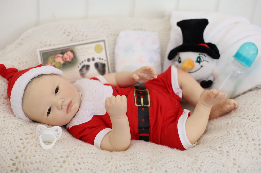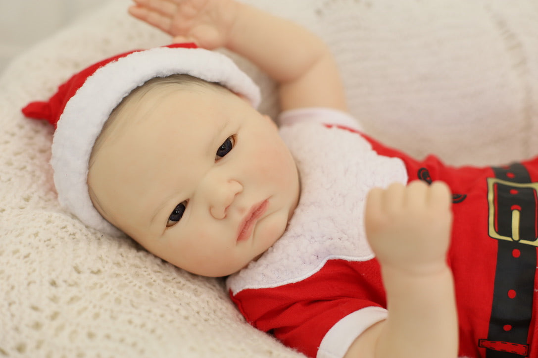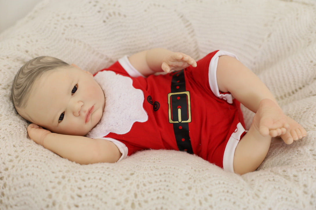 He has been hand painted at Aliyah's Playborn World by our team of talented reborn artists. Many, many layers of paint have brought this precious baby to life, making him look and feel just like a real baby.