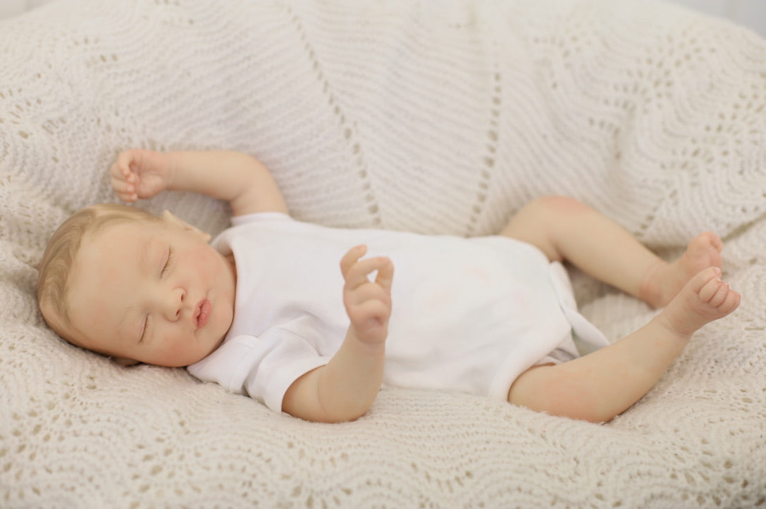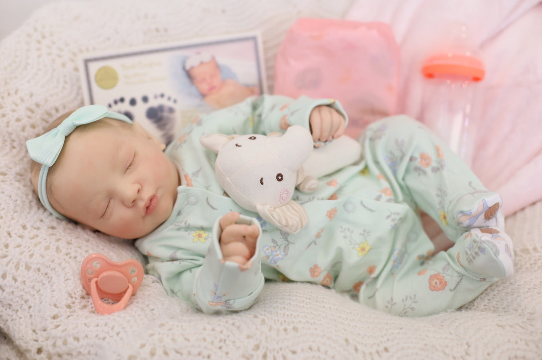 She has been hand painted at Aliyah's Playborn World by our team of talented reborn artists. Many, many layers of paint have brought this precious baby to life, making her look and feel just like a real baby.