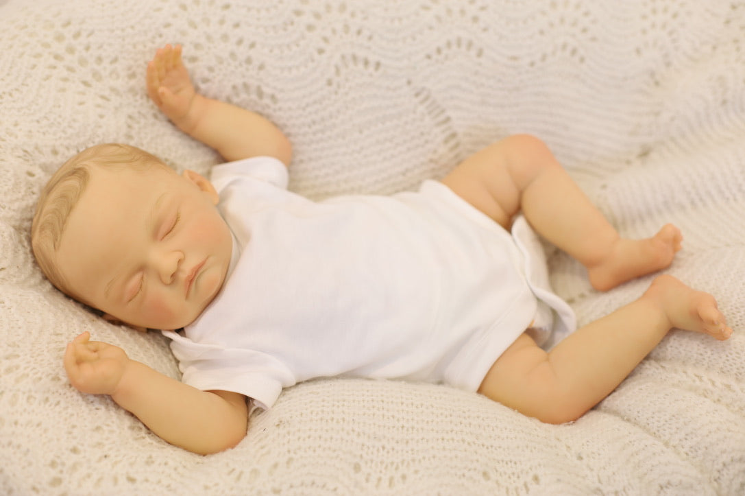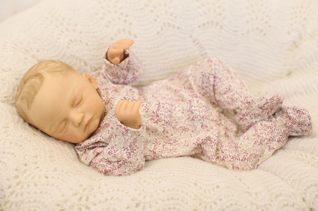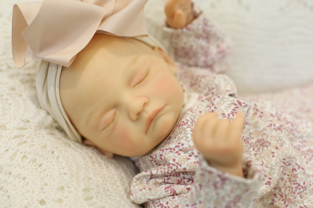 She has been hand painted at Aliyah's Playborn World by our team of talented reborn artists. Many, many layers of paint have brought this precious baby to life, making her look and feel just like a real baby.