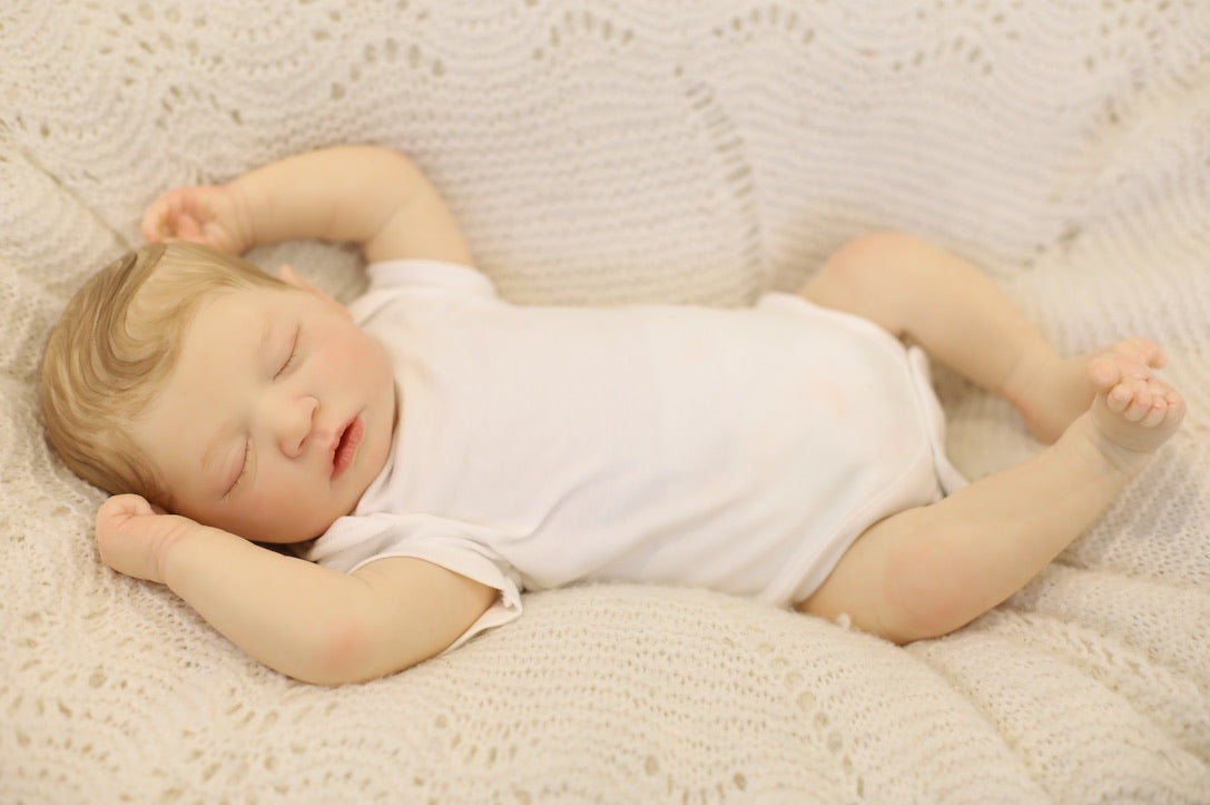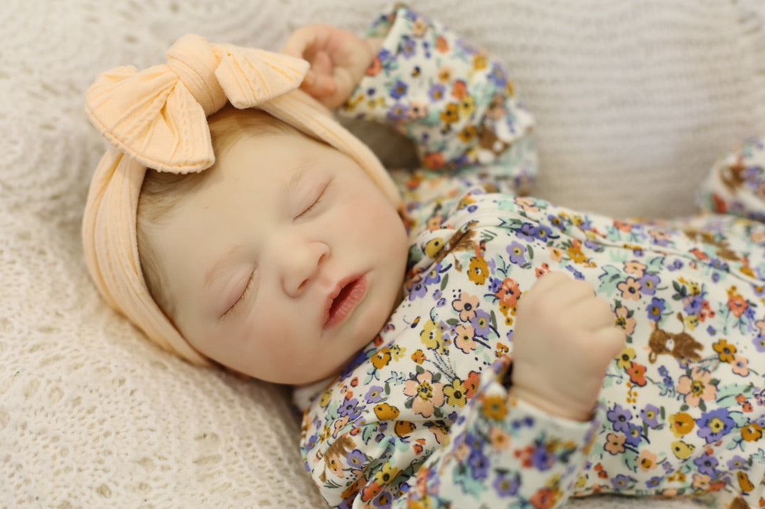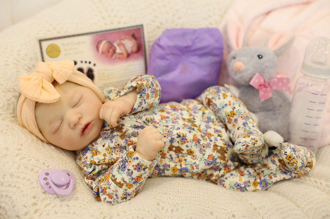She has been hand painted at Aliyah's Playborn World by our team of talented reborn artists. Many, many layers of paint have brought this precious baby to life, making her look and feel just like a real baby.